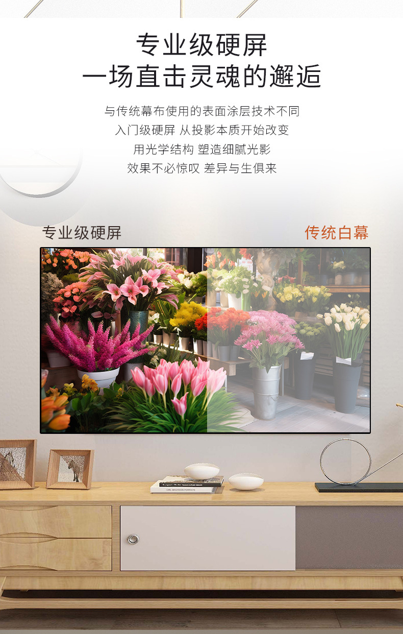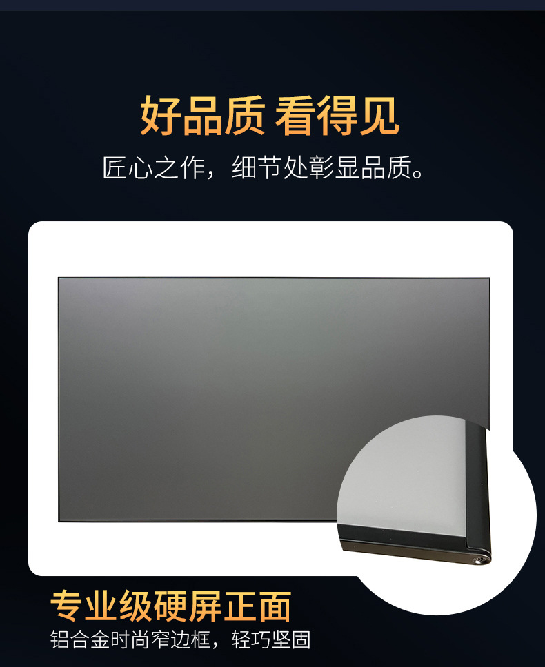 2、硬质屏幕,镜面平整度,有效控制画面畸变。