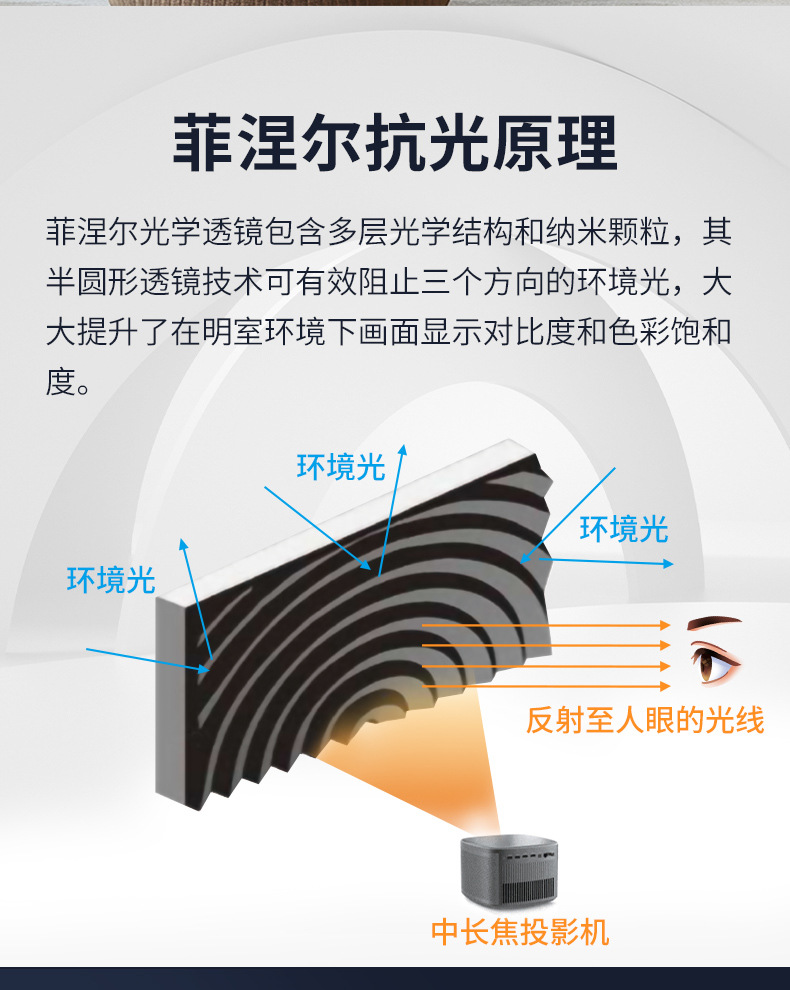 可选幕料:长焦三色菲涅尔抗光,长焦菲涅尔抗光,超短焦菲涅尔抗光,超短焦三色菲涅尔抗光,黑栅超短焦抗光。